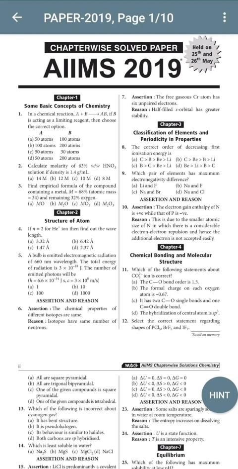 26 years AIIMS Chapter wise solutions - Chemistry is a chapter wise question bank having questions from past 26 years AIIMS Biology. This include questions of 2019 AIIMS and Chapter wise AIIMS previous year questions of last 26 years’ (1994-2019) with detailed answers for easy and clear understanding of the AIIMS Exam pattern.