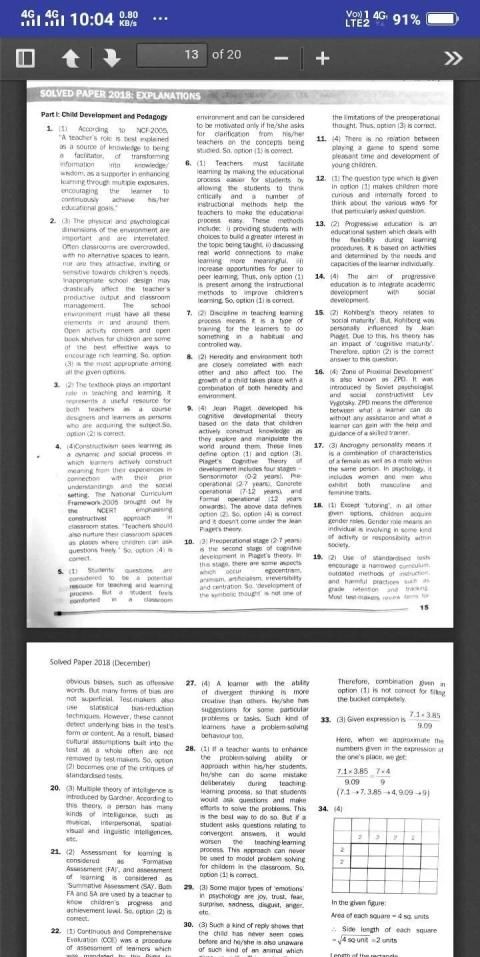Get CTET solved papers from 2011- 2019 With explanation of Answers and also 10 Nos of practice set papers forupcomibg CTET examination preparation with full explanation, solution of maths etc.