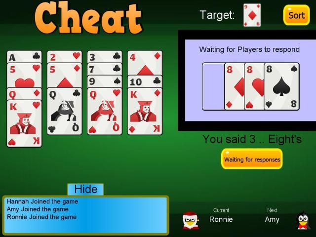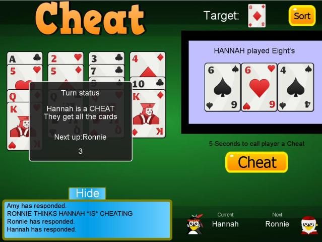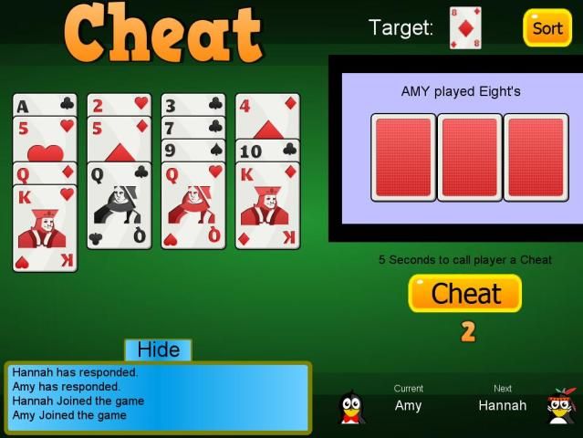 Cheat is a fast and fun packed card game where you need to bluff your way through and get rid of all your cards. It may also be known as Bluff or I Doubt it.