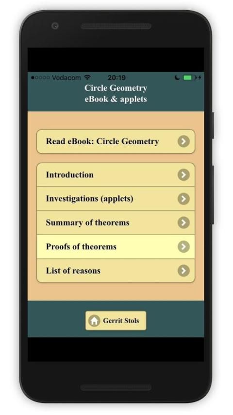 Aplikasi ini akan membantu Anda untuk memvisualisasikan, memahami dan menikmati Lingkaran Geometry. applet GeoGebra yang tertanam akan memberikan kesempatan untuk menjelajahi dan menemukan hubungan lingkaran dan sudut yang menarik. Tarik dan menemukan!