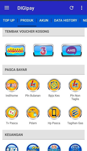 Aplikasi android DIGIpay adalah aplikasi mobile gratis untuk member-member setia DIGIpay di mana pun berada. Aplikasi ini memudahkan Anda dalam melakukan berbagai transaksi seperti pengisian pulsa, pembelian token listrik, pembayaran tagihan pasca bayar, pembelian voucher game, dll.
