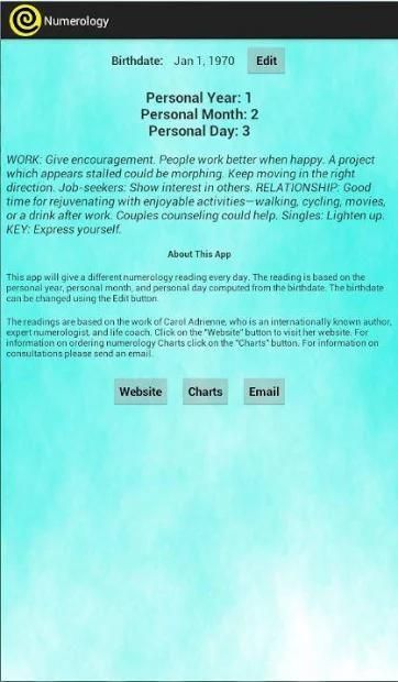 Written by master numerologist and author, Carol Adrienne, this advertisement-free numerology application combines her many years of experience and insight into a simple and portable tool that can be used anywhere and anytime to answer those questions that face you on a daily basis.