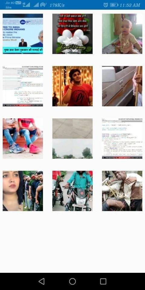 Setelah menginstal dan membuka aplikasi, itu akan mulai memindai direktori dan sub direktori ponsel Anda mencari gambar yang dihapus atau dihapus dan menambahkannya ke daftar. Operasi ini dapat menghabiskan waktu tergantung pada ukuran penyimpanan Anda dan kinerja ponsel Anda. Tepat setelah itu antarmuka baru dengan pratinjau foto yang dihapus akan muncul, semua foto dibagi oleh folder. Anda dapat memilih masing-masing secara terpisah dan mulai mencari di dalamnya dan mengembalikan gambar Anda dari sana.