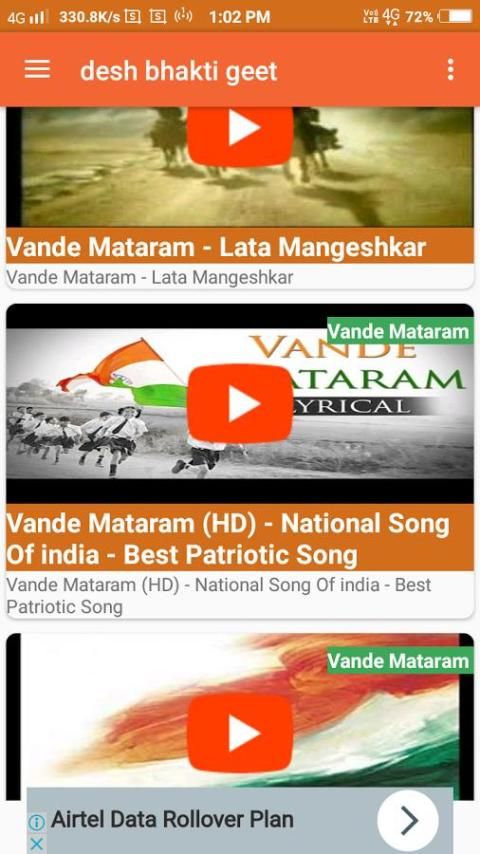 Desh bhakti geet aplikasi ini sangat berguna dalam kehidupan sibuk hari ini, kita semua ingin mengajar chlidrens tentang negara kita, bangsa, dan juga tentang kebebasan melawan aplikasi ini adalah kumpulan vairous video lagu-lagu patriotik yang sangat membantu untuk mengingat Soldier kami dan freedomfighter ini setiap saat tidak hanya pada tanggal 15 Agustus dan 26 Jan untuk semua orang.