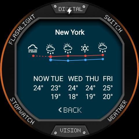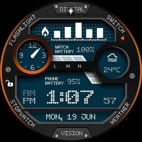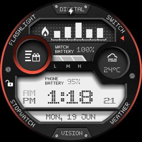 Digital Visi menonton wajah untuk Android Wear adalah jam digital muka dengan fungsi interaktif dan pengaturan warna invert.