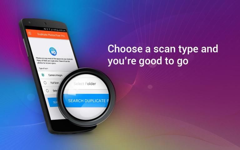 ● Full Scan: seluruh ponsel Anda dipindai untuk duplikat, termasuk penyimpanan internal & eksternal (jika tersedia). Jika Anda menerima foto pada setiap aplikasi messaging, mereka dipindai juga. Jadi Anda tidak perlu khawatir tentang menemukan secara manual.