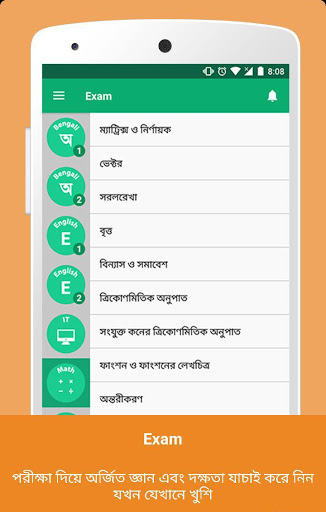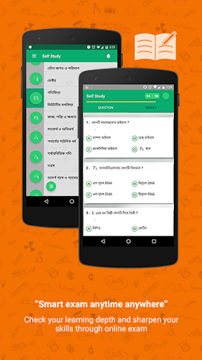 2. Studi mandiri: mengambil tes MCQ singkat untuk mengevaluasi diri Anda pada bab mana pun dari setiap subjek. Anda dapat melakukan praktik tata bahasa Inggris atau menyelesaikan pertanyaan model dari kelas lima ke HSC. Aplikasi ini dapat sangat membantu untuk persiapan ujian SSC, persiapan ujian HSC, persiapan ujian PSC, persiapan ujian JSC dan persiapan ujian BCS. Siswa pascasarjana dapat mengambil tes untuk persiapan penerimaan MBA dan ujian pekerjaan pengajaran atau persiapan uji kelayakan guru (Tet).