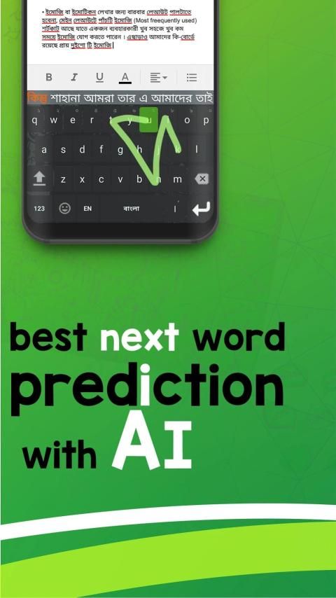is the most user friendly Bangla keyboard with Artificial Intelligence. Say goodbye to all those embarrassing typos while typing fast single handed with our amazing swipe feature. Besides switching languages of your text frequently is now a matter of single tap on your keyboard.