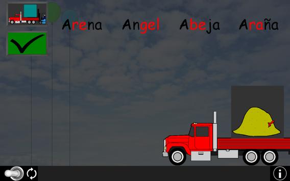 Este juego de aprendizaje está diseñado para niños, que ya hayan aprendido algunas letras y estén empezando a leer palabras. Ya con poco conocimiento básico pueden los niños leer y de forma entretenida mejorar su velocidad de lectura y conocimiento de letras.