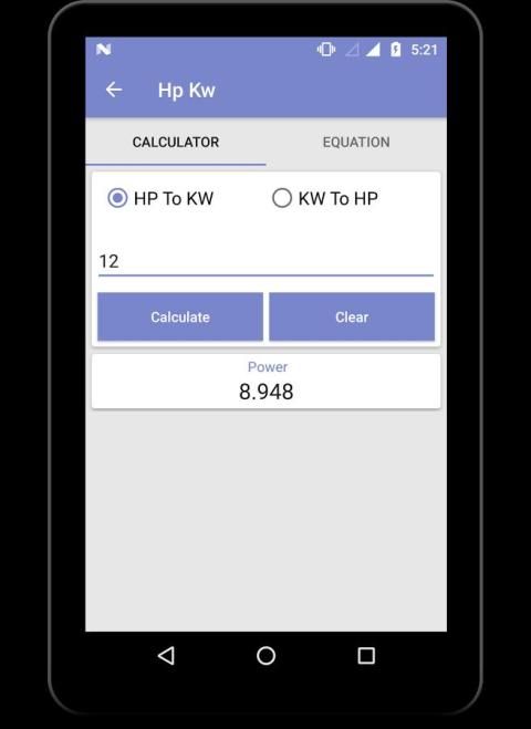 Demikian pula menghitung nilai untuk sekarang, Perlawanan, dan Power. App termasuk formula dengan deskripsi yang tepat.