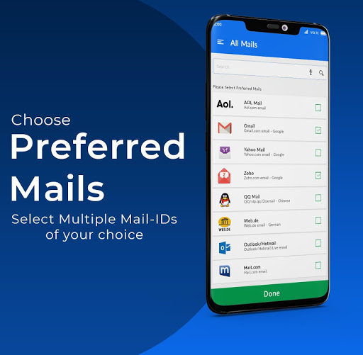 - You can find all leading email providers such as Gmail, Outlook, Yahoo Mail, Mail.com, AOL, Zoho and more on the All Email access app.
