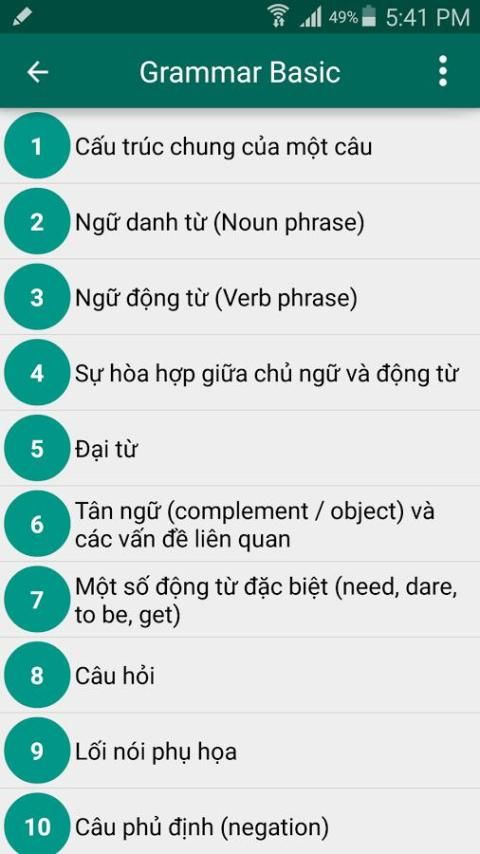 Phan mem hoc ngu Phap tiếng Anh Tren ponsel menggantung Djau Việt Nam.