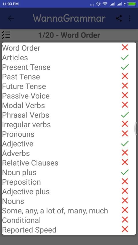 • Customize questions to test your remembering and understanding of Grammar that you learned
