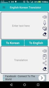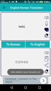 English Korean Translator is free app to translate from Korean to English and English to Korean. You can use it as English Korean Dictionary or Korean English Dictionary also.