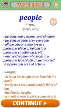 This app will help people to learn and review thousands of the most popular English words by pictures, pronunciation, explanation and examples.