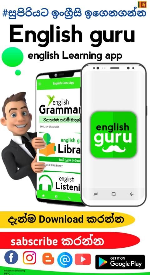 Learn English in sinala today to download the english guru app.You too can win your English speaking dreams.