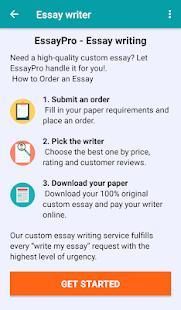Essay Writer - Custom Writing Service application will help to solve your writing assignments, whether it is a college essay, research paper, dissertation or thesis. Our service provides paper writing at any Academic level: high school, college, university, Master’s and Ph.D.