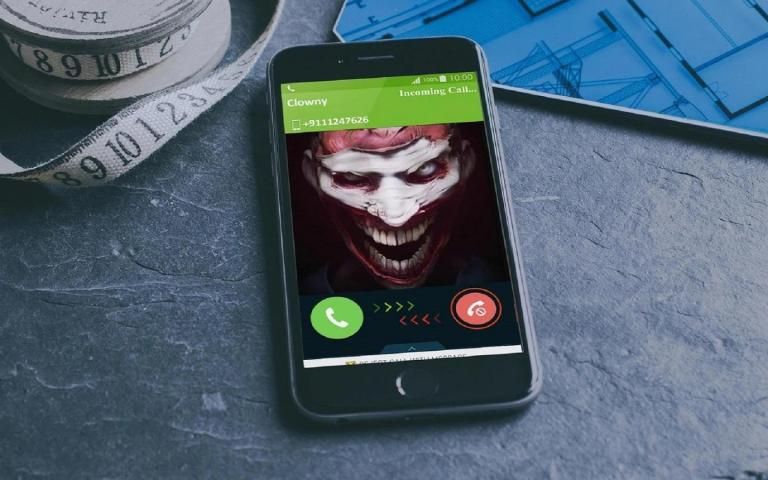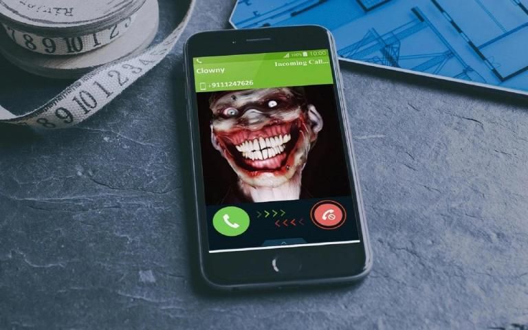 - mensimulasikan panggilan masuk palsu dari badut pembunuh menakutkan, kerangka atau tudung hantu.
