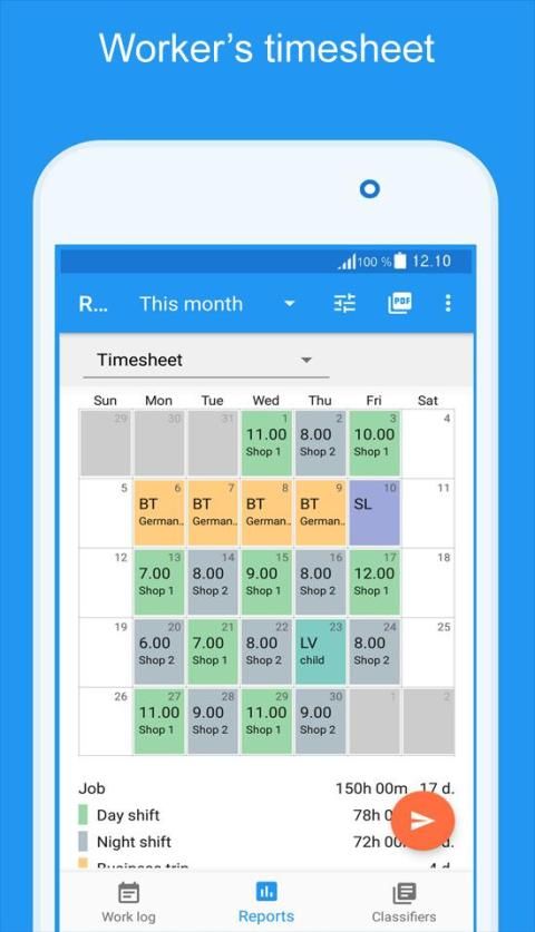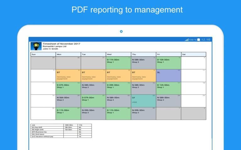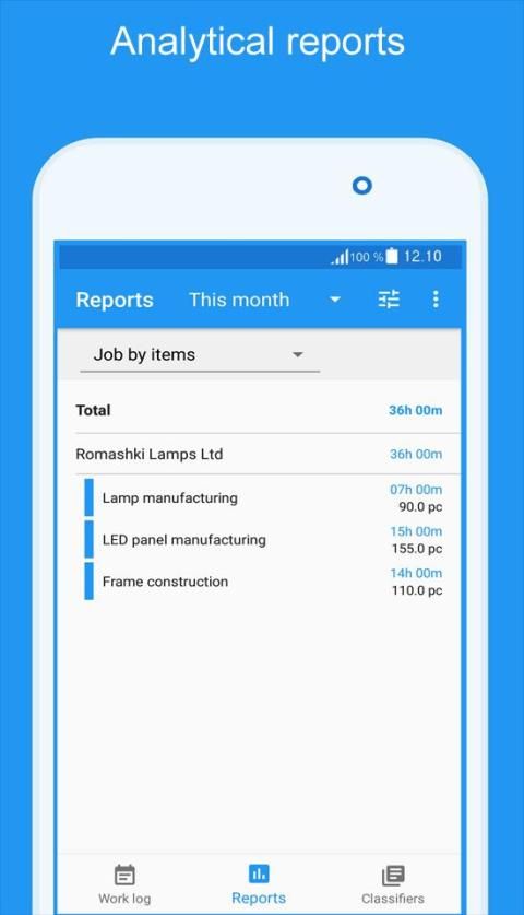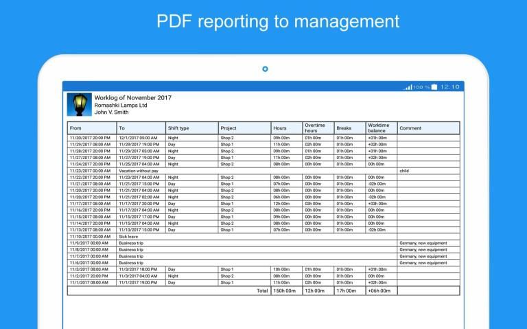 You can detail job by items and specify hours for each item. Timesheets can be exported to PDF and shared with employers. Use reports to analyze the data for custom period.