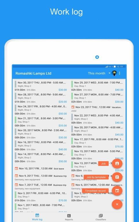 Express Worklog is your personal assistant for working hours tracking, easy PDF reporting to management. Use job templates and widget for fast entering. Piecework tracker. Express Worklog emphatically replaces a paper or spreadsheet.