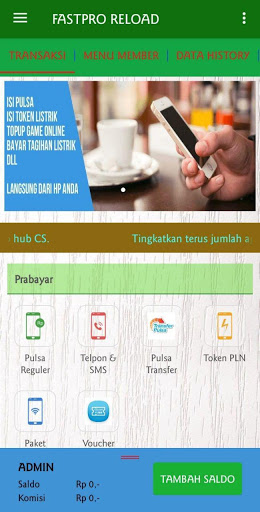 Aplikasi android FASTPRO RELOAD adalah aplikasi mobile gratis untuk member-member setia FASTPRO RELOAD di mana pun berada. Aplikasi ini memudahkan Anda dalam melakukan berbagai transaksi seperti pengisian pulsa, pembelian token listrik, pembayaran tagihan pasca bayar, pembelian voucher game, dll.
