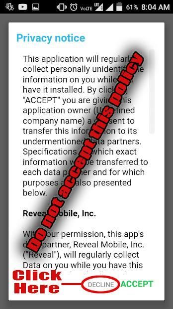 Tetapi satu hal yang seharusnya tidak Anda lakukan: setelah menginstal aplikasi, jika Anda meminta kebijakan privasi untuk menerima, maka tidak. Hanya menolak kebijakannya. Itu tidak akan menjadi masalah.