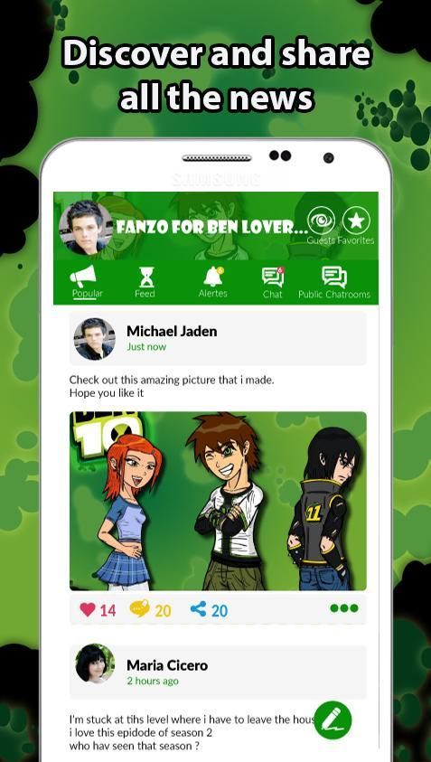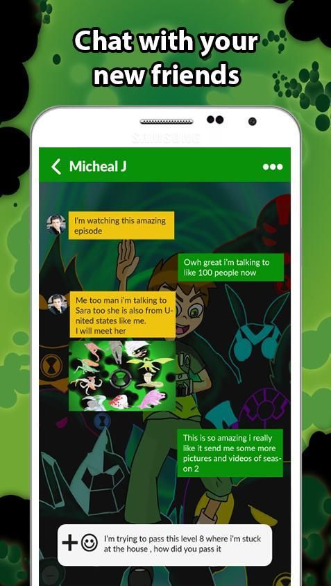 Dengan menggunakan aplikasi ini Anda akan bertemu teman-teman baru yang memiliki minat yang sama di ben 10 kekuatan asing seperti Anda, Anda dapat membangun lebih banyak persahabatan, pengikut dan menemukan ben 10 ultimate alien permainan berita dan ben 10 pengalaman gambar alien, video dan penggemar seni, Anda yang di dunia yang didedikasikan untuk ben 10 game pertempuran Pecinta game.