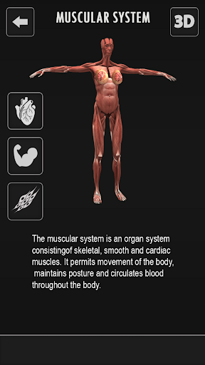 Setiap sistem tubuh manusia dan bagian tubuh wanita tidak hanya ditunjukkan dalam 3D tetapi juga masing-masing sistem anatomyka memiliki diagram berlabel sendiri dan setiap istilah memiliki penjelasan terperinci untuk mempelajari anatomi manusia sepenuhnya.
