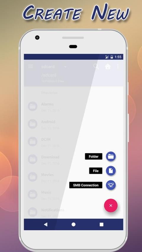 ☞ Tekan mengambang Button ( "+") untuk membuat file baru atau folder.