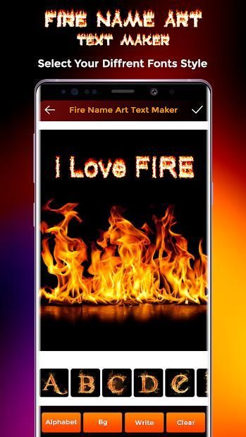 Fire Name Art Text Maker yang memiliki lebih banyak opsi untuk mengubah gaya nama Anda dengan editor nama api panas. Aplikasi ini akan mengubah gaya nama Anda dengan gaya yang menarik.