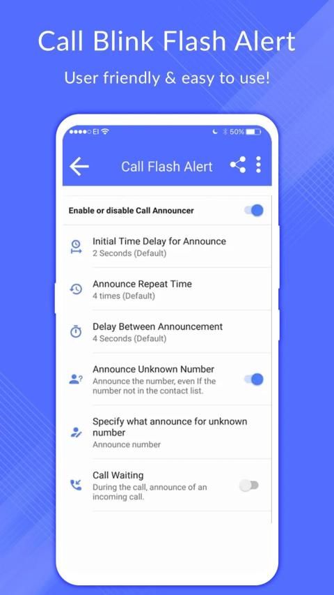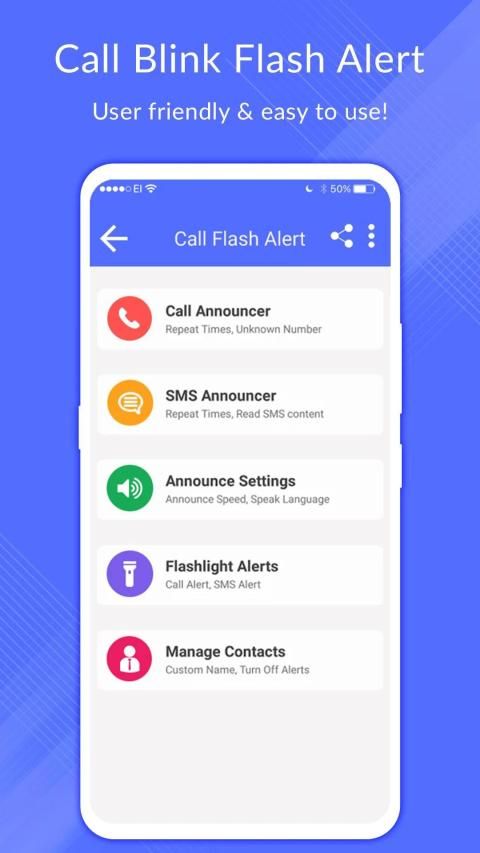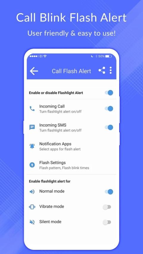- Flashlight blinking alert on call, flash alerts second for all your incoming calls.