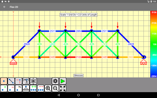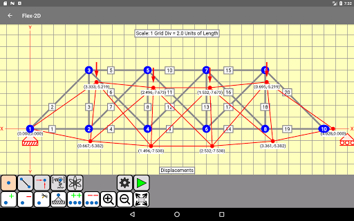 Flex-2D melakukan analisis statis linear dari struktur truss pesawat menggunakan metode elemen hingga.Ini adalah tujuan umum dalam ruang lingkup dan mudah digunakan.Solusi masalah ukuran kecil hingga sedang dapat diperoleh.Itu dikembangkan untuk digunakan oleh insinyur desain, mahasiswa teknik sipil, struktural, dan mekanik, dan profesional yang berpengalaman yang menginginkan solusi yang cepat dan akurat untuk berbagai masalah.