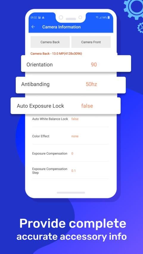 ✦ Full Cpu Info: Cpu Frequency - Battery Health app supports checking Camera Info : Diagnostic tool for the camera device info: camera hardware, reports information about picture resolution, lens, focal length and other camera features.