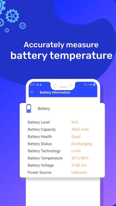 ✽ Mengukur suhu baterai dengan akurat saat menggunakan Info Cpu Lengkap: Frekuensi Cpu - Aplikasi Kesehatan Baterai.