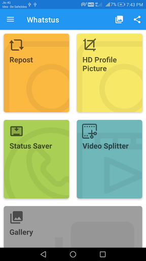 Whatstus - All in one Media ToolBox App having 6 Main features: