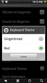 The keyboard has a little Settings icon you can use to set the theme to red (or back to Gingerbread), or to change any of its other settings on the fly.