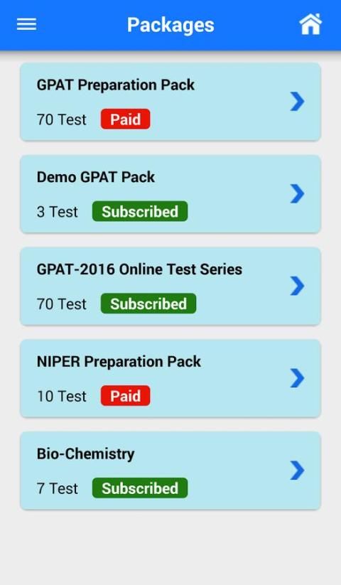 Berbagai paket seperti GPAT Persiapan Pack (di mana kita memberikan materi lengkap untuk GPAT & gpat tes seri mock online, Graduate Farmasi Aptitude Test ujian secara online pack, NIPER JEE Persiapan Tes Pack, Obat Inspektur Persiapan Pack tersedia untuk berlangganan.
