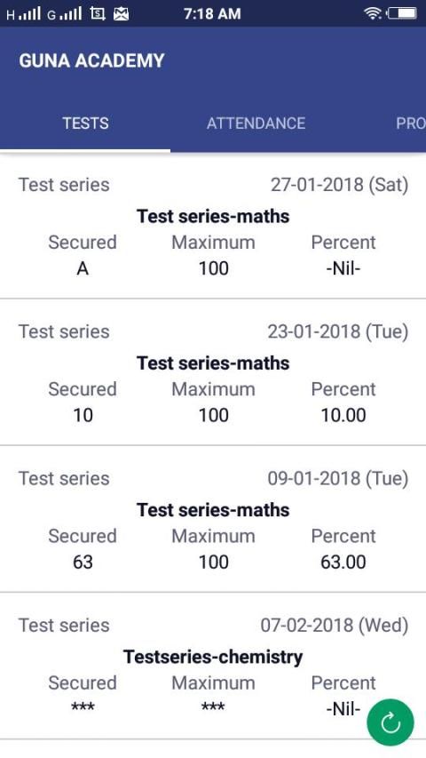 Guna Academy - Students App for Parent and students. This App is useful to know the test progress of the student, and also Attendance of each class and overall attendance.