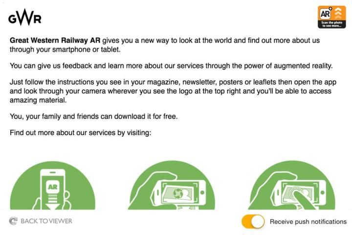 Sekarang Anda dapat mengakses konten baru yang menarik dari Great Western dengan ditambah aplikasi ini reality GRATIS! Lihat publikasi dan produk kami datang untuk hidup ketika dilihat melalui smartphone atau tablet.