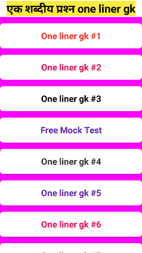Gk one liner in hindi Gk in hindi One liner gk in hindi सामान्य ज्ञान एक शब्दीय प्रश्न 1000 one liner gk in hindi and also mcq quiz एक शब्दीय प्रश्न के साथ बहुविकल्पीय प्रश्न भी है इस एप्प में