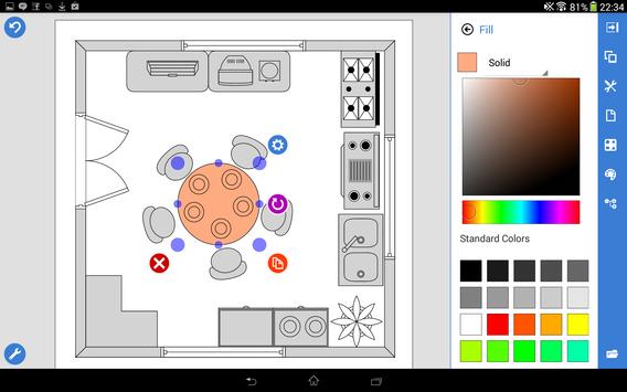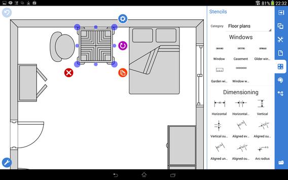 The app easily sets page size and orientation, measure units (millimeter, centimeter, meter, foot and inch). It’s possible to draw rooms of any configuration connecting walls arbitrary, add windows, stairs, dimensions, and locate furniture.