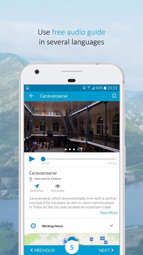 ** Nyaman informasi terkini dan wisata panduan audio di Georgia termasuk Tbilisi, Batumi, Kakheti, Mtskheta, Svaneti, Tusheti, Kazbegi dan tujuan lain dalam 4 bahasa yang berbeda: