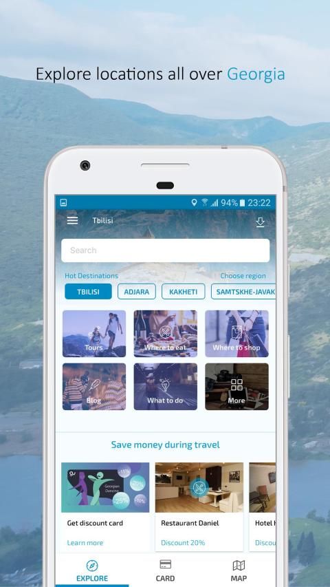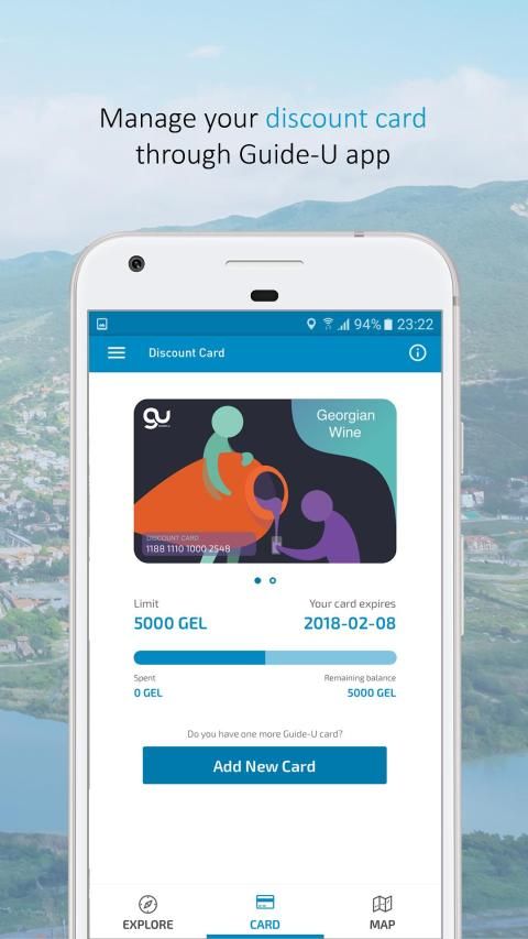 You can activate your Discount Card and get more information in Guide-U App or at www.guideu.ge