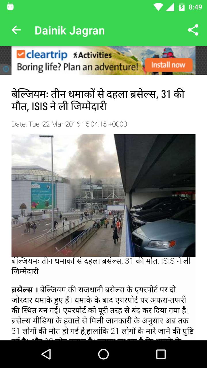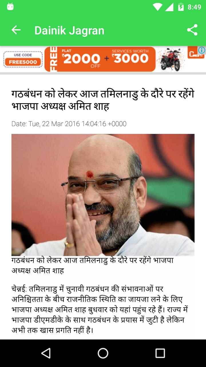 One of the leading News Paper Dainik Jagran from Kanpur, is having cerculation over 11 major states in India in Hindi Language with average circulation of 163.7 lakhs copies. This app helps you to get all major news from Indian cities like Kanpur Varanasi, Allahabad, Meeruth, Agra, Bareilly including Delhi.