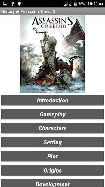 Sejarah Assassin's Creed 3 adalah Aplikasi gratis. Fitur Aplikasi kami