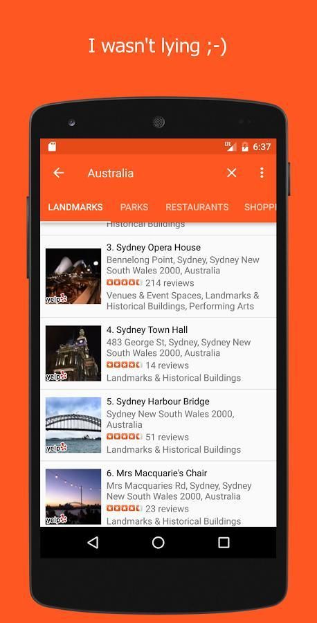 Cari terpanas tempat wisata (landmark, taman, toko, dan lain-lain) di daerah mulai dari Washington, DC ke Australia! Cukup masukkan lokasi ke dalam permintaan pencarian, dan mengharapkan untuk melihat hasil terbaik didukung oleh Yelp.