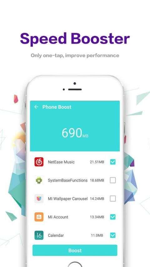 Efisien memanfaatkan memori telepon Anda dan meningkatkan kinerja telepon Anda, dan Meningkatkan kecepatan ponsel Anda dengan menutup proses background berlebihan dan membebaskan kartu SD.