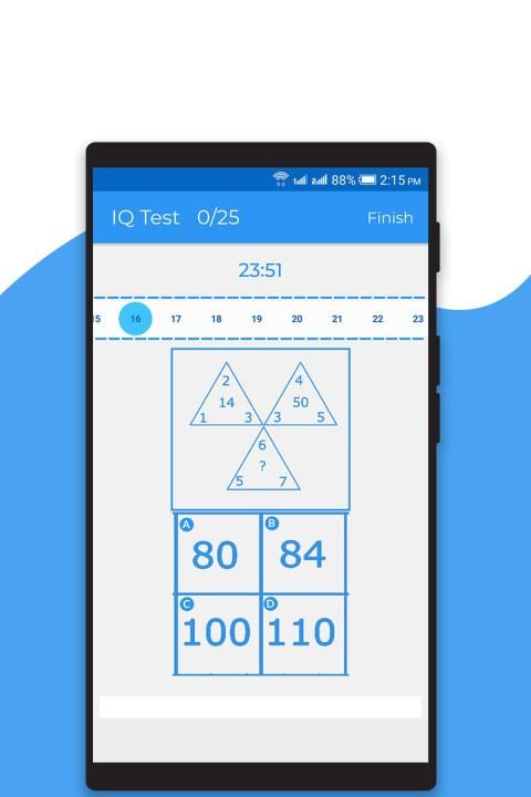 • Answer all the 25 questions wisely in the given time and use the Finish button to submit your IQ test.
