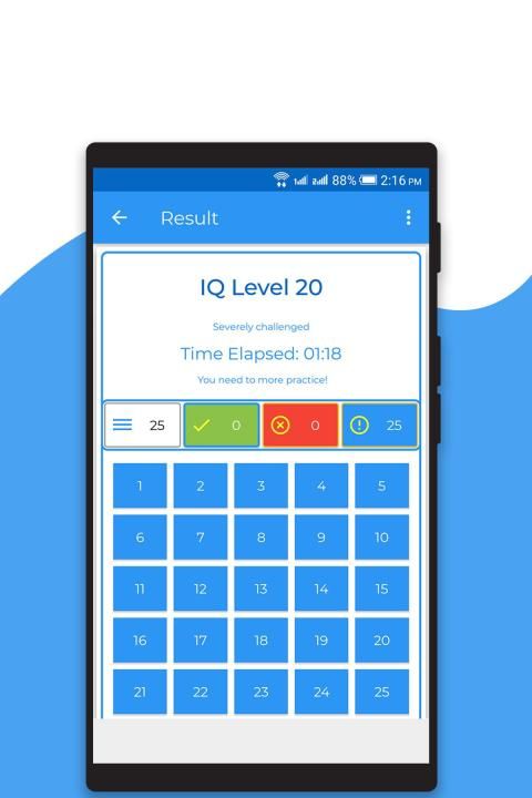 Once you submit the IQ test the app will tell you the result screen that tells you: