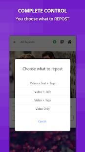 *We are not responsible for any intellectual property violation, any privacy violation and any other legal issues resulting from the download, re post and distribution of the content. Please use the app responsibly and legally.
